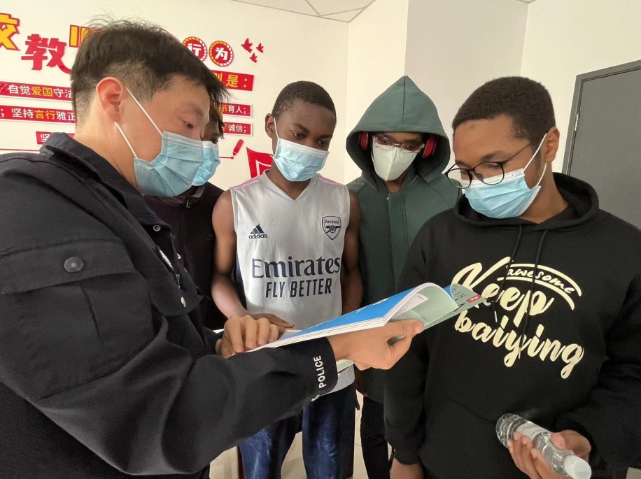 首先,陈念书记向与会成员介绍了近年来洋山边检站在移民事务工作中取得的成绩。他强调,为了深入贯彻落实二十大精神,边检站进一步细化了出入境服务指南,编制《出入境服务手册》,策划印刷《移民服务专刊》,目的是更好地吸引外国专家、人才来中国交流、学习,更好地传播中国文化。交流现场,边检站办公室成员向参加活动地留学生代表发放了《出入境服务手册》和《移民服务专刊》,并表示边检站会随时为大家服务。
