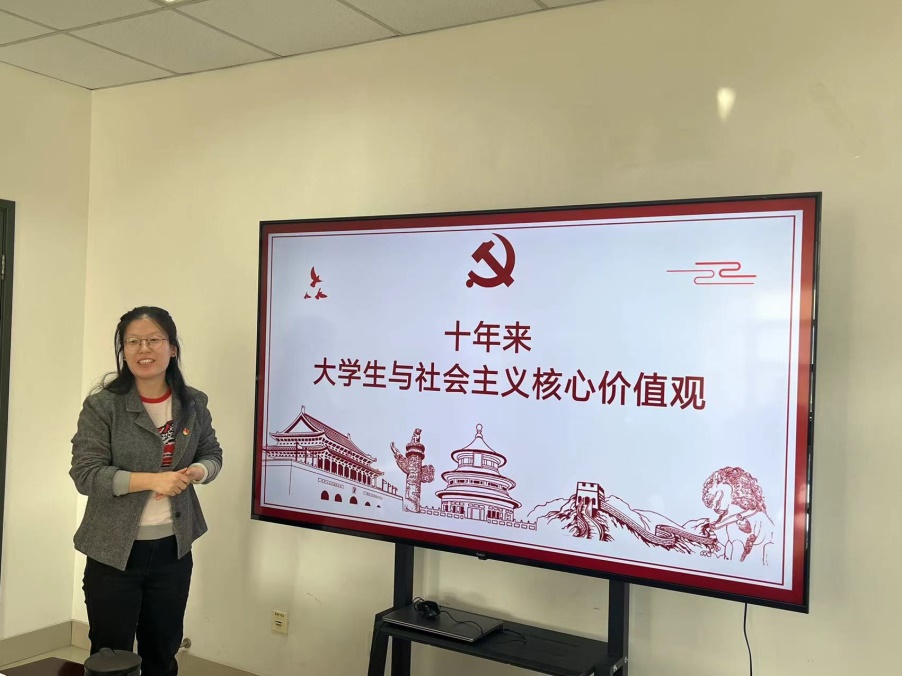在交流环节,洋山边检站办公室二级警长黄金秋和外国语学院专职组织员杨婷分别用“十年中的‘你’”和“十年中的‘大学生们’”为题,讲述了十八大以来边检站工作人员的工作缩影和大学生在培育和践行社会主义核心价值观方面取得的成绩。在谈及社会主义核心价值观个人层面中的现状时,双方表示,今后会加强在广西三江的扶贫项目,以“云课堂”和“儿童大学”为服务平台,鼓励大学生积极走入社会、融入社会,参与实践,在践行中更好地理解社会主义核心价值观。