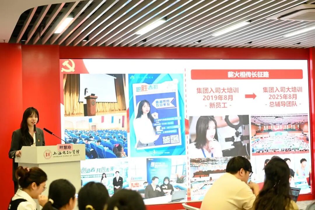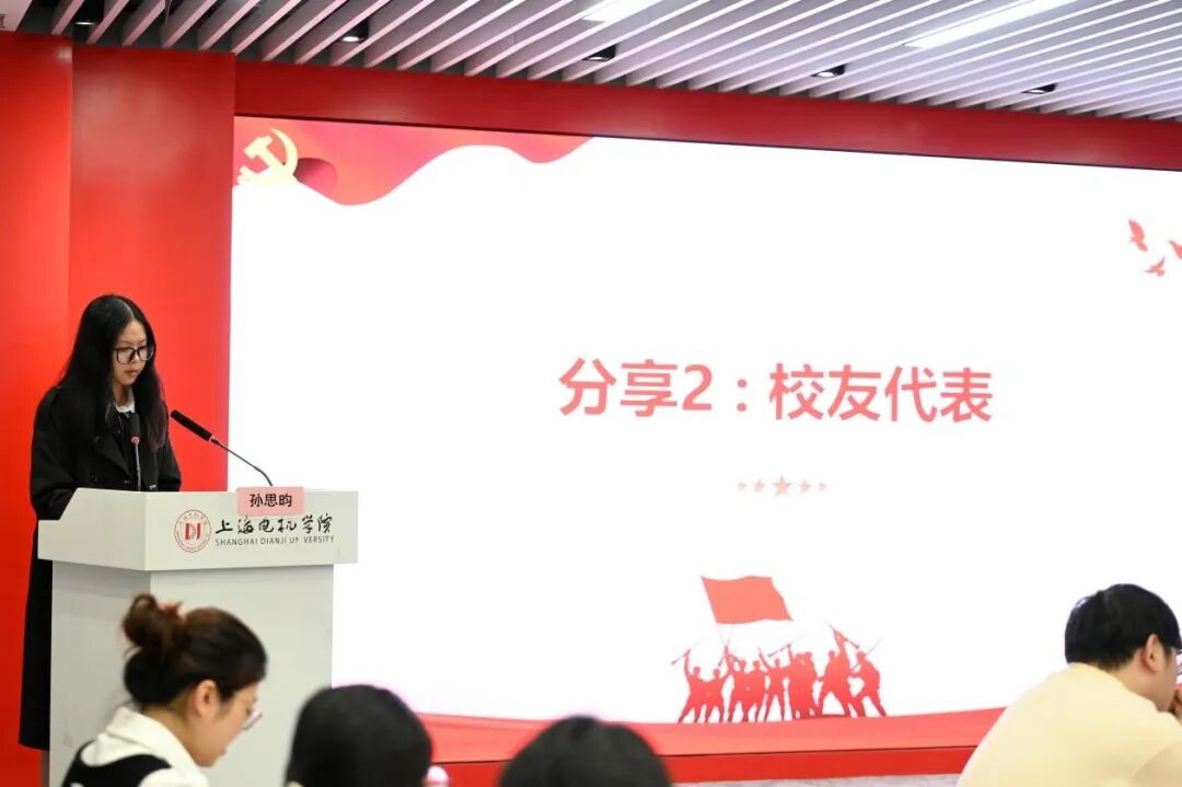 活动第二项围绕精神传承——“融贯中西铸电机匠心—讲述我与长征的故事”,分别邀请第四党支部学生党员陈东侠,校友代表、上海市虹口区北外滩街道社区工作者孙思昀,校友代表、上海电气集团人才交付中心招聘经理叶慧玲作交流发言。