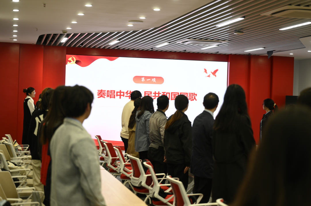 活动在庄严的国歌声中拉开帷幕。全体党员肃然起立,高唱国歌,雄壮的旋律唤醒了每一位同志作为共产党人的初心与使命。